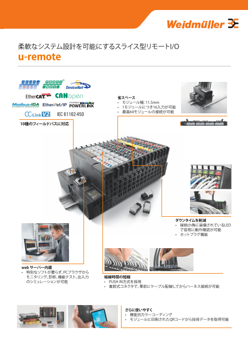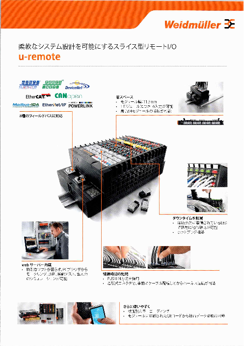■省スペース ・モジュール幅:11.5mm ・1モジュールにつき16入力が可能 ・最高64モジュールの接続が可能 ■8種のフィールドバスに対応 ■webサーバー内蔵 ・特別なソフトが要らず、PCブラウザからモニタリング、診断、機能テスト、出入...