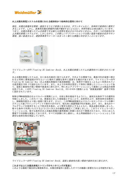 ワイドミュラーのPV Floating DC Combiner Boxは、水上太陽光...