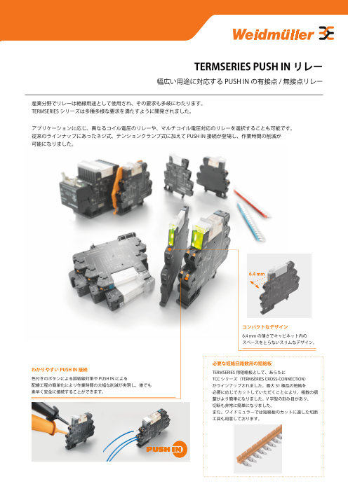 幅広い用途に対応するPUSH IN の有接点/ 無接点リレー