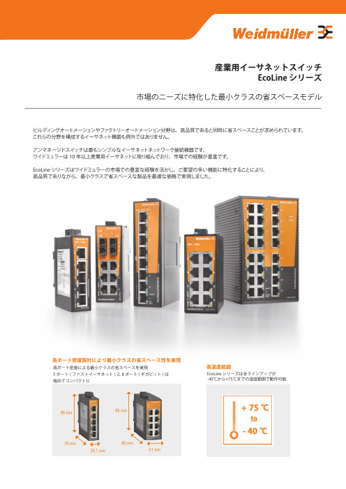 EcoLine シリーズはワイドミュラーの市場での豊富な経験を活かし、ご要望の多い機能に特化することで、高ポート密度設計により最小クラスの省スペース性を実現しました。