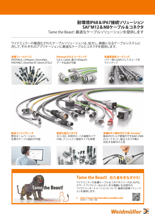 ワイドミュラーの最適化されたケーブルソリューションは、拡大し、複雑になるケーブルシステムに対して、それぞれのアプリケーションに最適なケーブルとコネクタを提供します。 ◆各種フィールドバス PROFIBUS、CANopen、DeviceNet、PR...