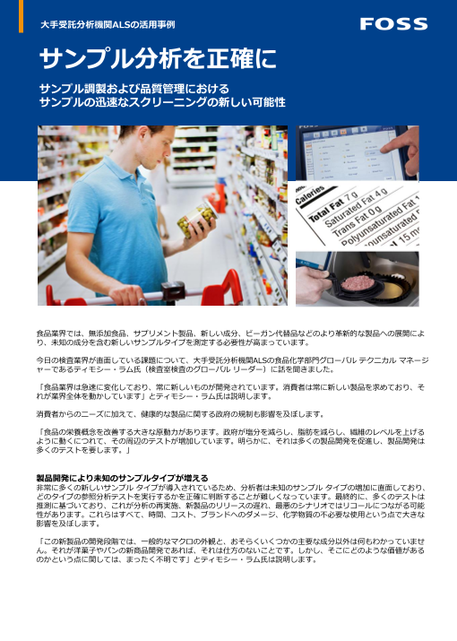 食品業界では、無添加食品、サプリメント製品、新しい成分、ビーガン代替品などのより革新的な製品への展開により、未知の成分を含む新しいサンプルタイプを測定する必要性が高まっています。 今日の検査業界が直面している課題について、大手受託分析機関ALSの食品化...