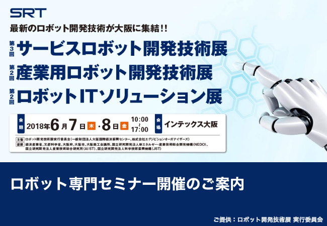 2018年6月7日から開催される産業用ロボット開発技術展。最新のロボット開発技術がインテックス大阪に一堂に集結します。 本展示会では約20ものセミナーが同時開催され、産業用ロボット、サービスロボット、ロボットITソリューションに関する最新動向や課題。解...