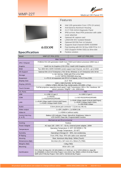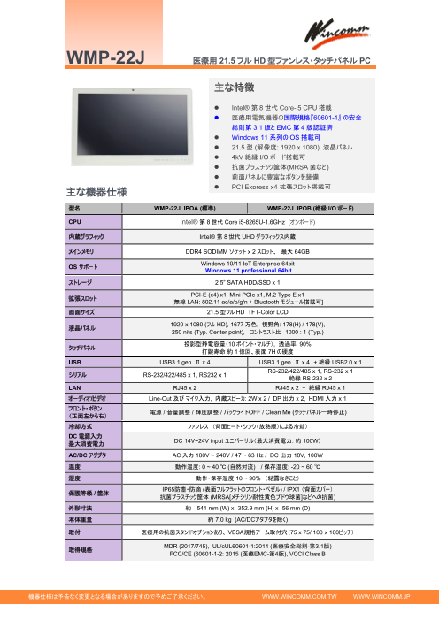 医療用60601-1及びMDR最新版認証。21.5型抗菌筐体タッチパネルPC。第8世...