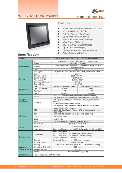 IP66対応完全防水・防塵対応のIntel 第12世代Core-i5搭載で高性能・薄型ファンレス版の15インチ(XGA: 1024 x 768)・タッチパネルPCです。以下のような特徴を有しております。 ・IP66対応の全面防水・防塵仕様の高性能・薄型...