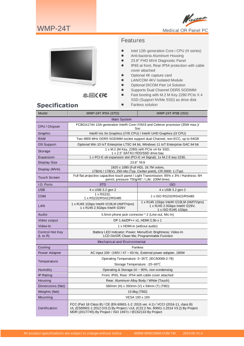 MDR最新版(含む医療用60601-1安全総則)認証。24型抗菌筐体パネルPC。第1...
