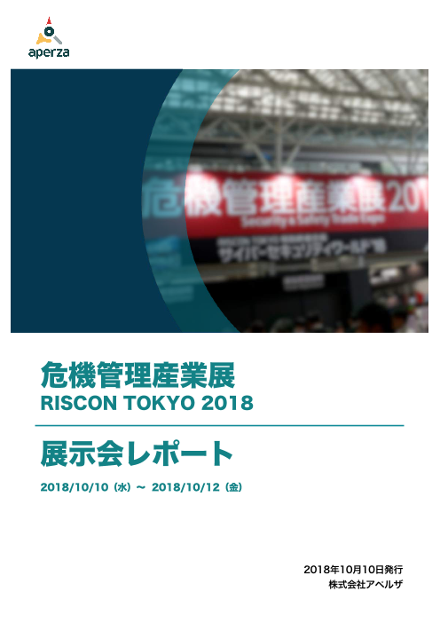 2018年10月10日(水)~12日(金)の3日間、東京ビッグサイトで開催中の「危機管理産業展(RISCON TOKYO)2018」速報取材レポートをお届けします。 今回も各ブースで伺った話を、写真とともにまとめました。ぜひダウンロードして、報告書...