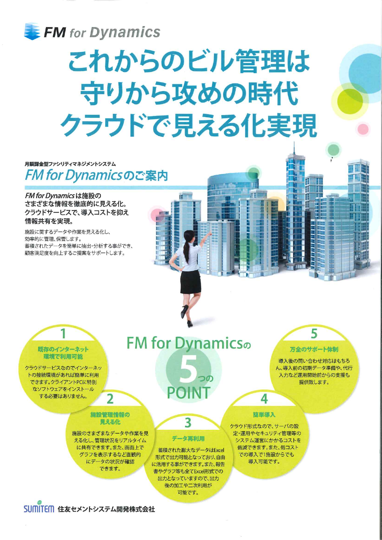 ・施設のさまざまな情報を徹底的に見える化。 ・クラウドサービスで、導入コストを抑え情報共有を実現。 ・既存のインターネット環境で利用可能。 ・データ再利用、簡単導入 ・万全のサポート体制 ◆詳細はカタログをダウンロードしてご覧下さい。