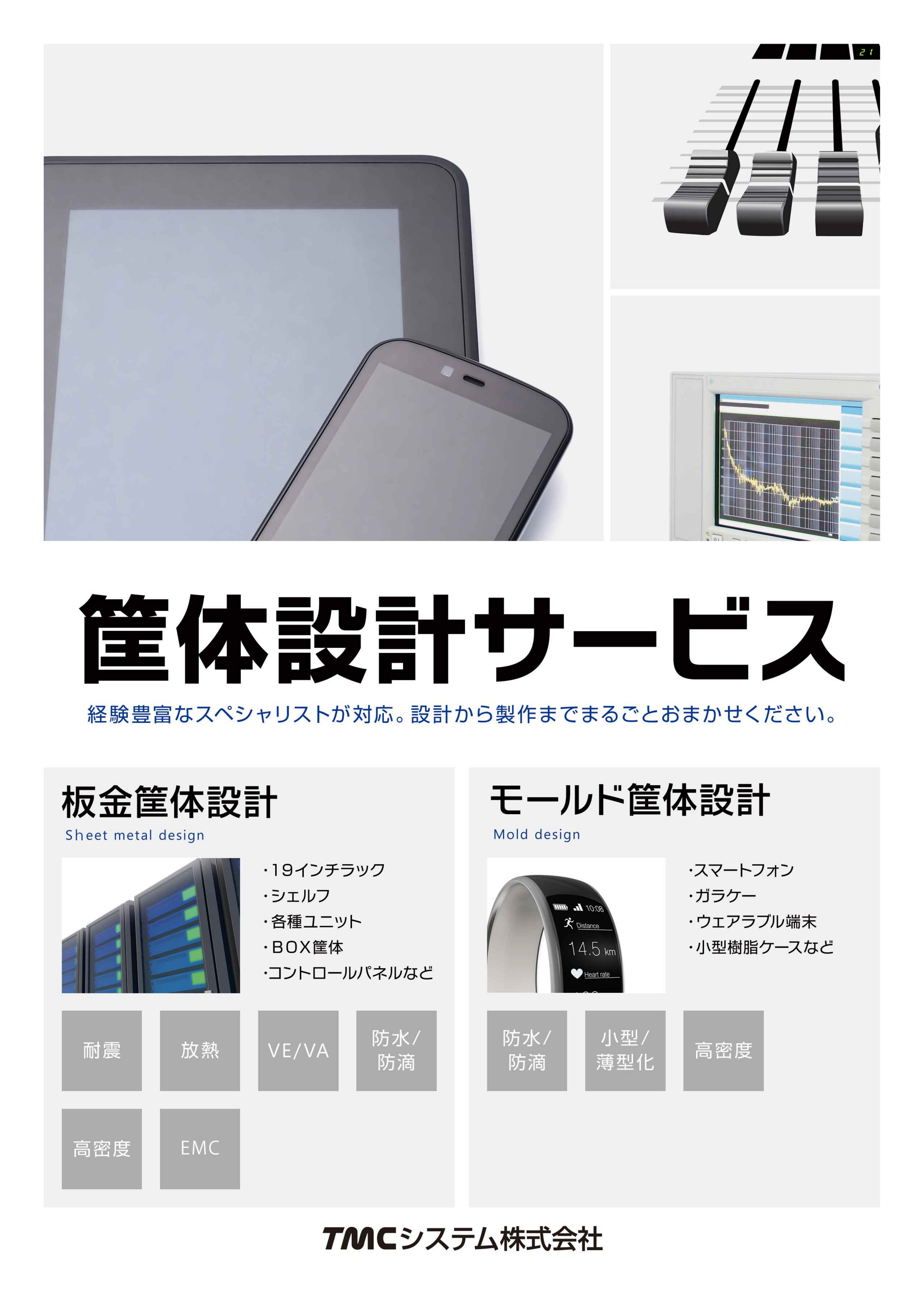 TMCシステムの設計サービスには、50年以上にわたる経験とノウハウがあります。 特殊用途、デザイン、組立性、コストなど、様々な条件を考慮し、最適な設計をご提案させていただきます。 ・板金筐体設計 ・モールド筐体設計
