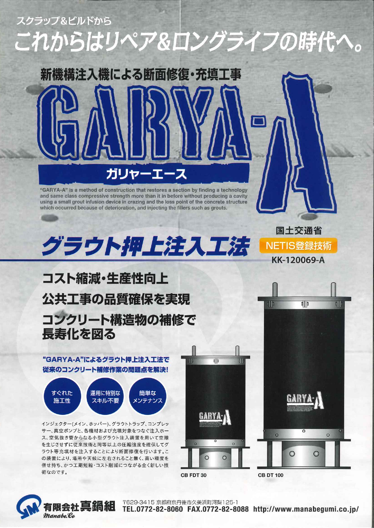 "GARYA-A"によるグラウト押上注入工法で 従来のコンクリート補修作業の問題点を解決! ・コスト縮減・生産性向上 ・公共工事の品質確保を実現 ・コンクリート構造物の補修で長寿化を図る ◆詳細はカタログをダウンロードしてご覧ください。