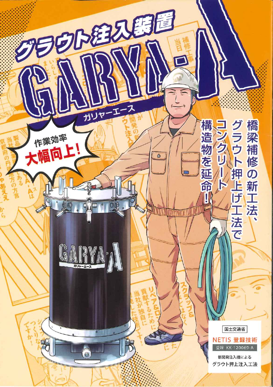 橋梁補修の新工法、グラウト押上げ工法でコンクリート構造物を延命! ・日本列島を襲うインフラの劣化 ・現場で生まれた「GARYA-A」 ・「GARYA-A」紹介、解説マンガ ◆詳細はカタログをダウンロードしてご覧ください。