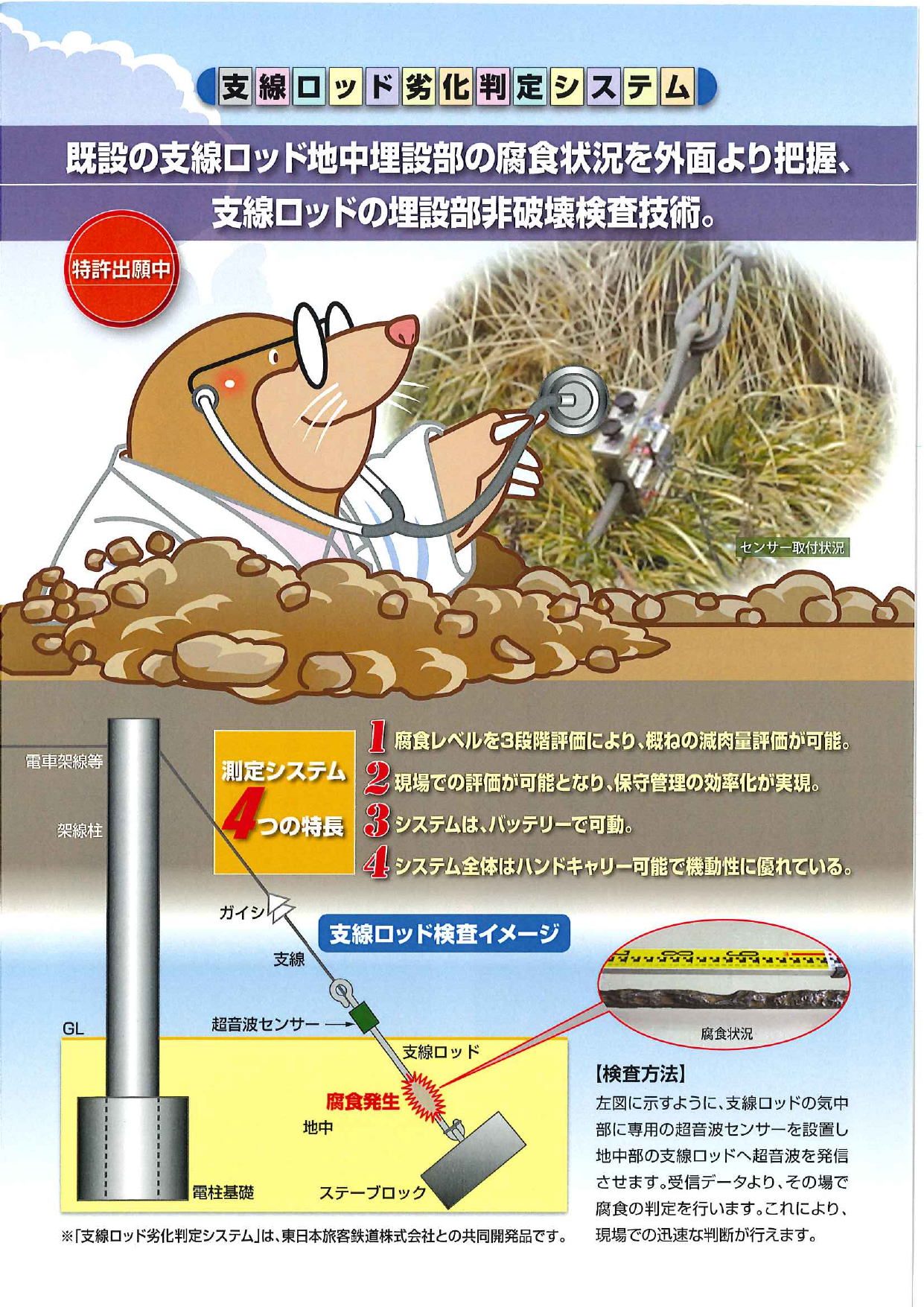 既設の支線ロッド地中埋設部の腐食状況を外面より把握、支線ロッドの埋設部非破壊検査技術...