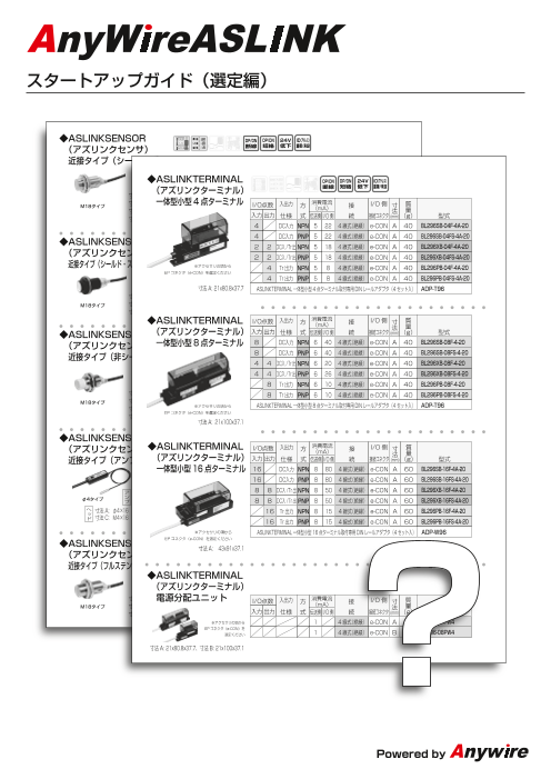 AnyWireASLINK(エニイワイヤアズリンク)はこれまでの AnyWire 省配線システムの優位性や特徴を全て継承した上で、様々な付加価値をプラスした画期的な省配線システムです。 ◆ iQSS対応 ◆ e-F@ctory対応 ◆ AnyW...