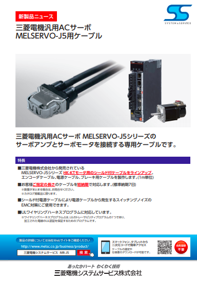 ◆三菱電機株式会社から発売されているMELSERVO-J5シリーズ HK-KTモータ用のシールド付ケーブルをラインアップ。エンコーダケーブル、電源ケーブル、ブレーキ用ケーブルを製作します。(1m単位) ◆お客様ご指定の長さのケーブルを短納期で対応します...