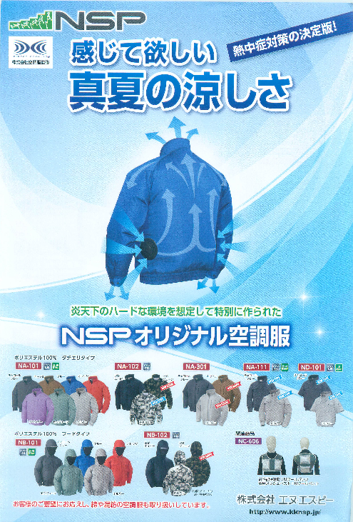 炎天下のハードな環境を想定して特別に作られたNSPオリジナル空調服