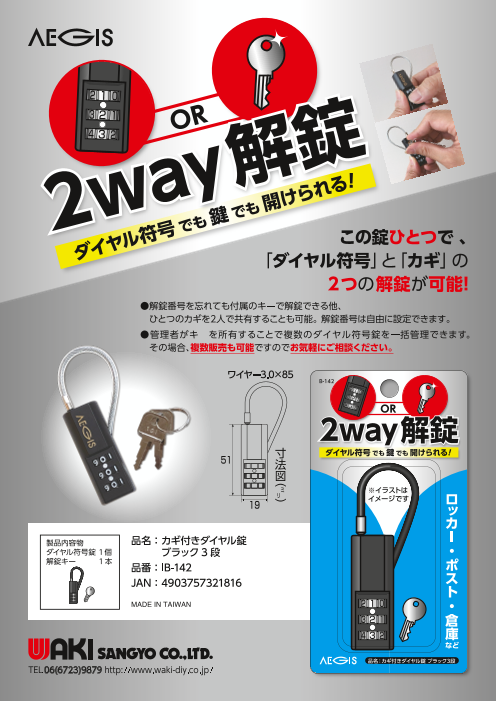 42カギ付きダイヤル錠3段 IB-142(1丁)