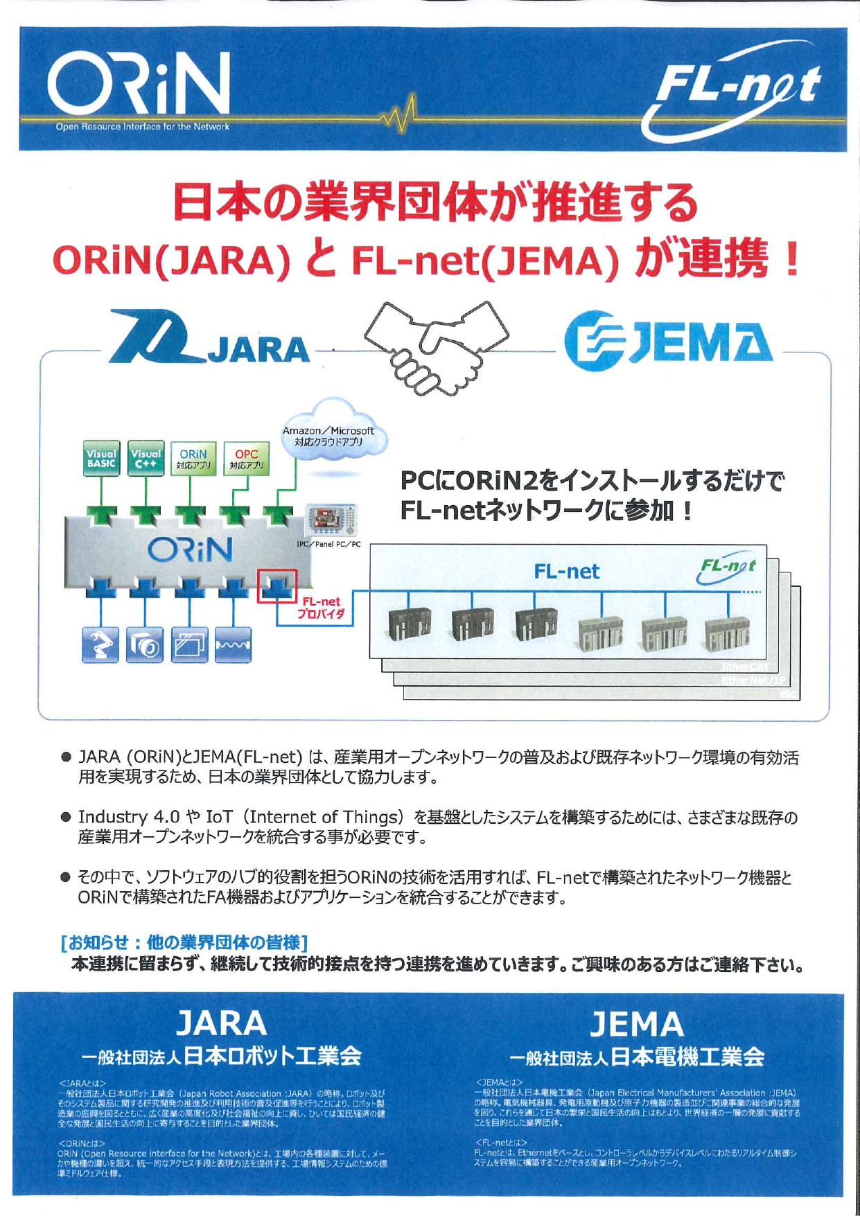 JARAとJEMAは、産業用オープンネットワークの普及および既存ネットワーク環境の有効活用を実現するため、日本の業界団体として協力します。本提携に留まらず、継続して技術接点を持つ連携を進めていきます。ご興味のある方はご連絡ください。 ◆詳細は、カタ...