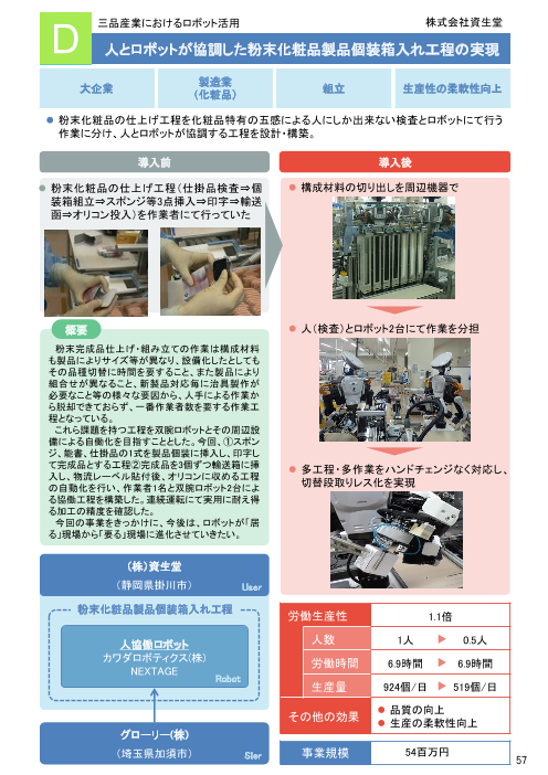 最も作業者数を要する粉末化粧品の仕上げ工程について、人とロボットが協調する工程を設計...
