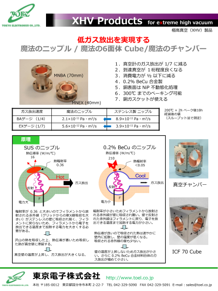 低ガス放出で今までの常識を覆す全く新しい真空構造材0.2%BeCu。ウルトラクリーンを創造し製造工程、分析工程に革新をもたらします。アウトガスでお納屋並みの方、必見です。