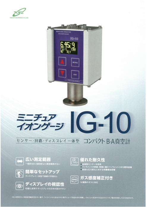 ・広い測定範囲 ・真空計設置スペースを節減 ・クリスタルゲージの採用により大気圧検出、低真空側での抜群の安定性を実現 ・耐久性の高い新しい構造のCCGを採用 ・イージーメンテナンス ◆詳細はカタログをダウンロードしてご覧下さい。