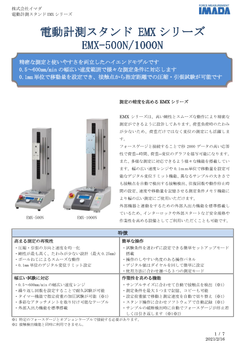 既存の高い剛性(最大0.25㎜)と幅広い速度レンジ(0.5~600mm/min)に、自動接触/破断検知機能や測定条件のコピー、保護機能等が追加され、より多様で正確な測定が可能に。変位計も容易に着脱可。 ◆詳細はカタログをダウンロードしご覧いただくか...