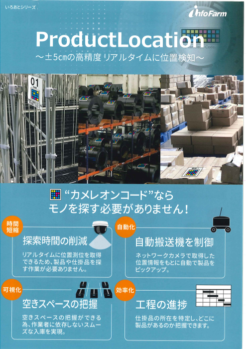 次世代カラーコード「カメレオンコード」と「ネットワークカメラ」を利用した「所在管理・動線管理ソリューション」は、従来RFIDでは困難だった作業環境下においても柔軟な対応を可能にします。現場の業務改善を検討しているお客様にベストなソリューションです。 ...