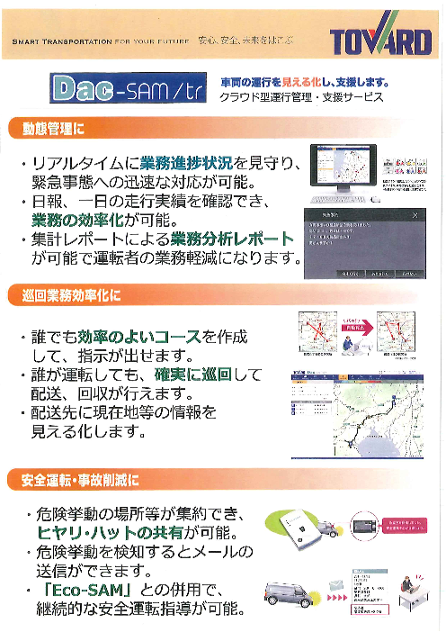 ◆動態管理に ◆巡回業務効率化に ◆安全運転・事故削減に ◆詳細はカタログをダウンロードしてご覧下さい。