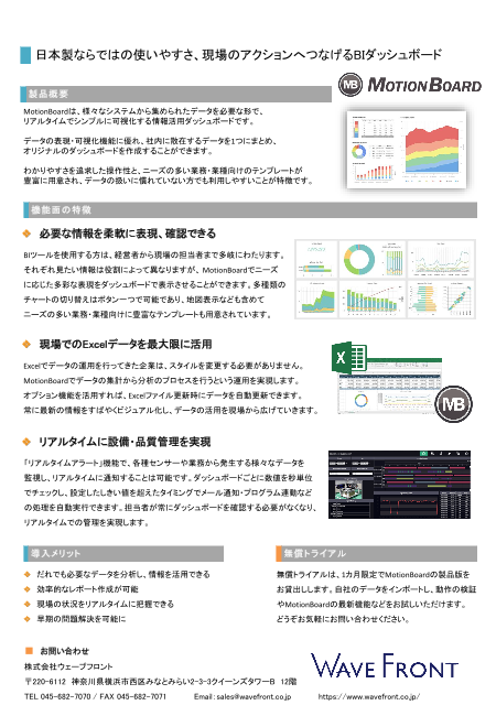 『MotionBoard』は、情報の可視化とデータドリブンにより企業のパフォーマンスを高めるBIダッシュボードです。 専門家でなくても、豊かな表現力を持つGUIにより直感的に使えます。膨大な情報の分析をリアルタイムでスピーディに行えます。