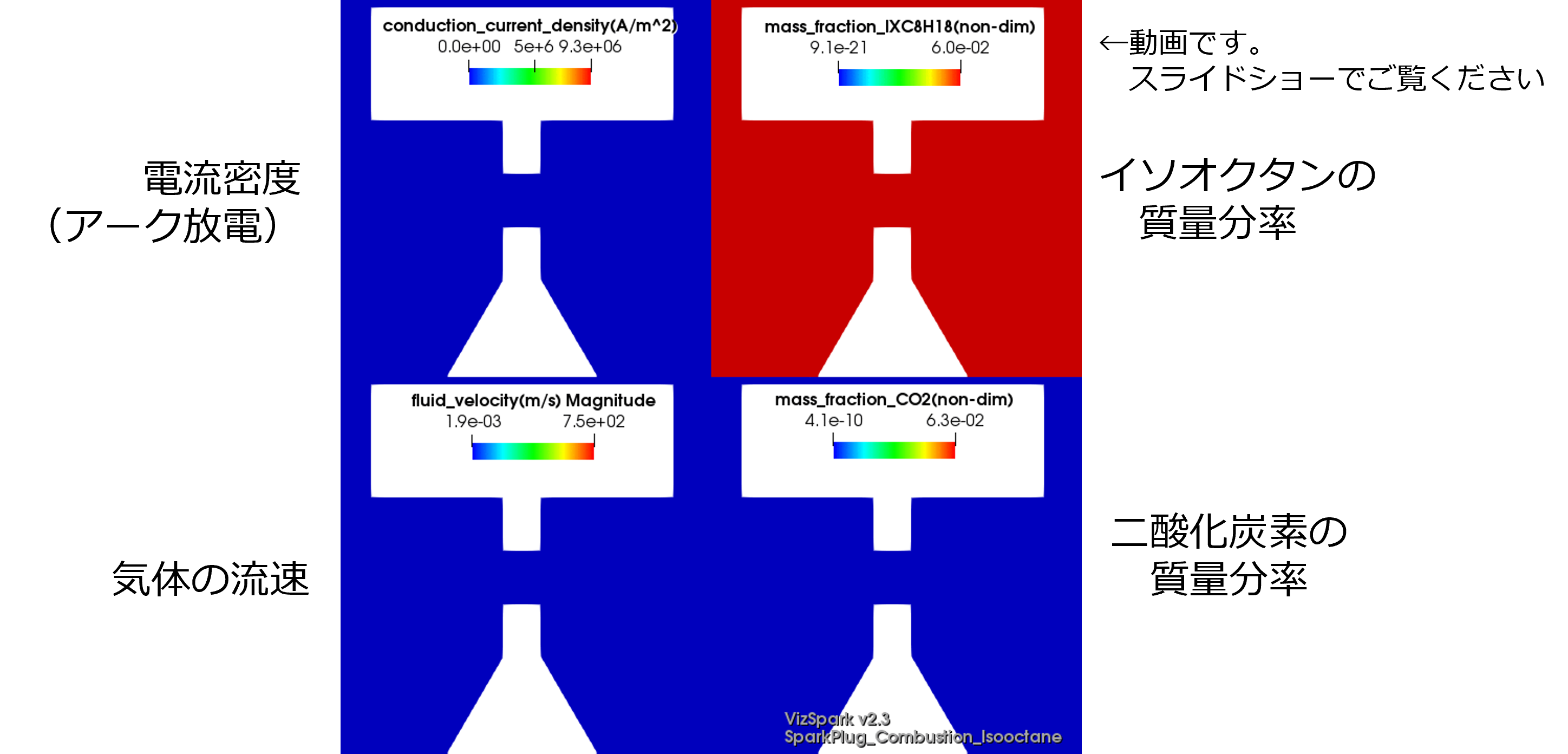 VizSparkは、プラズマシミュレーションの専門家、テキサス大学オースティン校のRaja教授が設立した、米国Esgee Technologies社によって開発された、アークプラズマシミュレーションソフトウェアです。 点火プラグ及び遮断器での解析に...