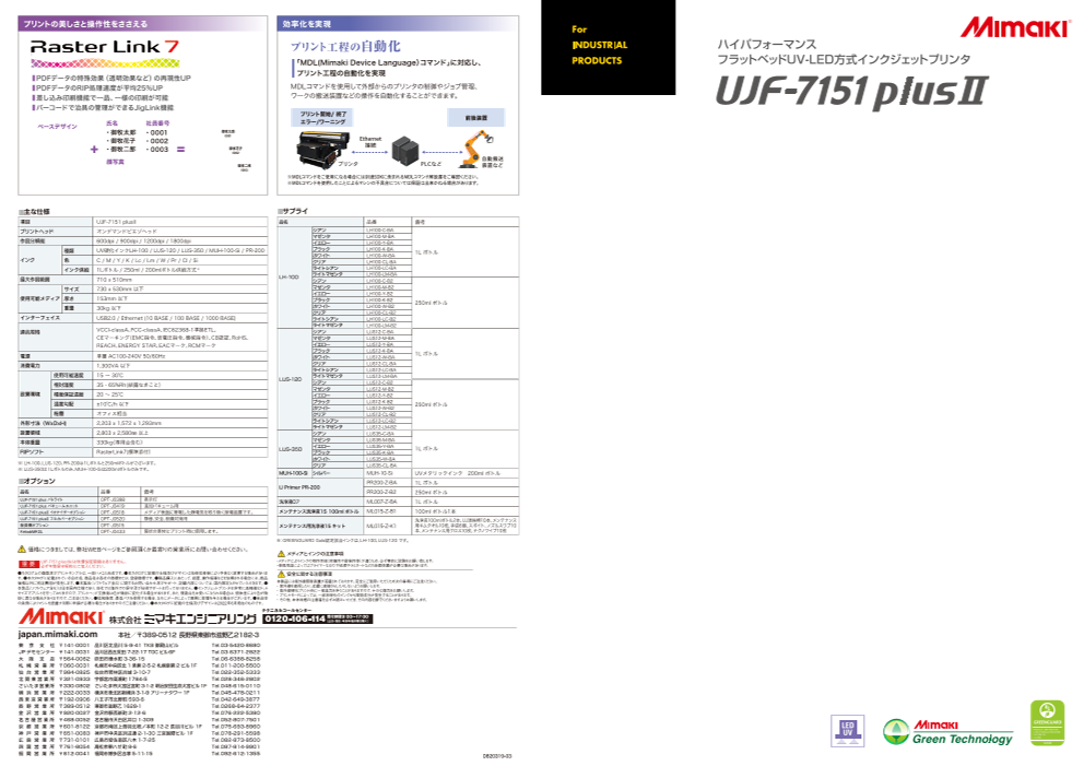 「UJF-7151 plusII」は、クラストップレベルの生産性と安定性に加え、高精度・高画質を備えた従来機である「UJF-7151 plus」から、さらに品質と安定性を追求し、高精度・高画質・高速化を実現したUVインクジェットプリンタのハイパフォーマン...