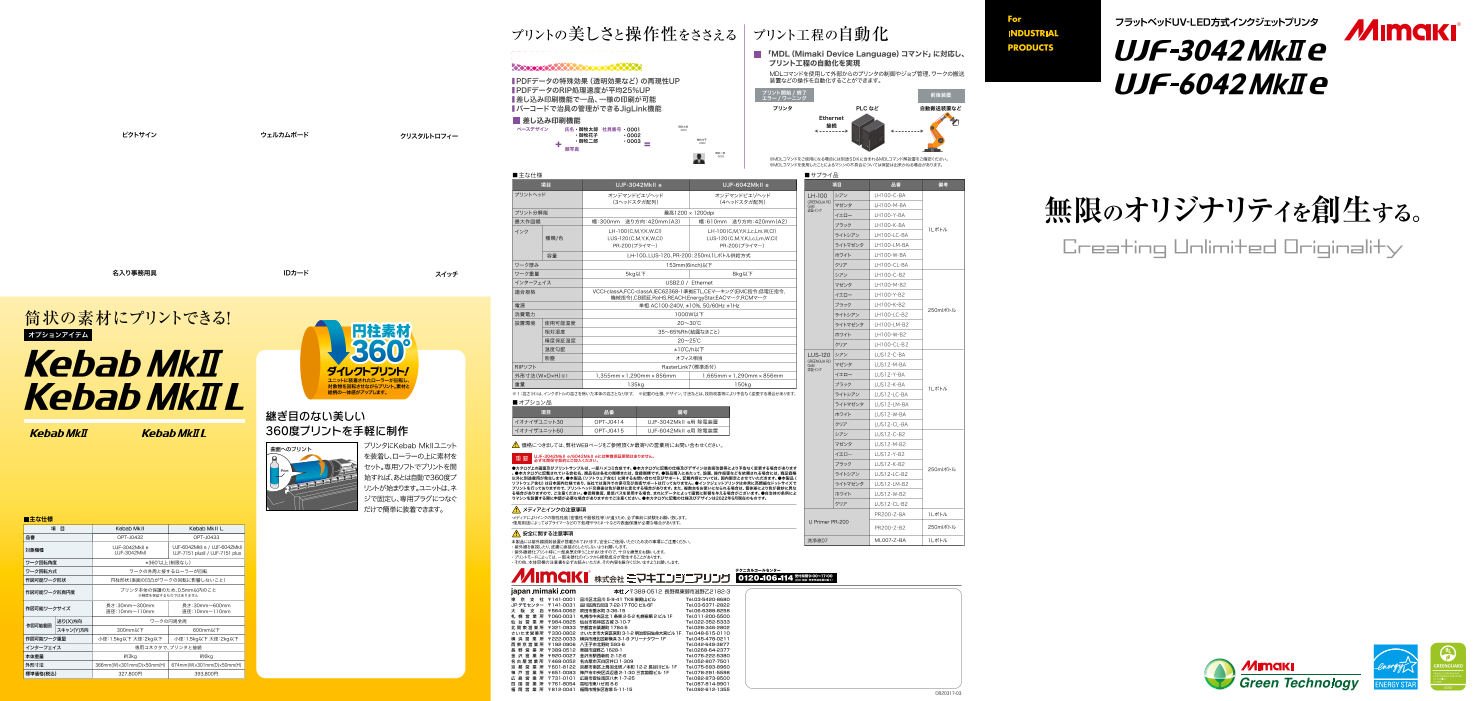 「UJF-3042MkII e」は「UJF-3042MkII」の後継機となる新型モデルです。 A3サイズ&高さ153mmに対応。 従来機で評価された操作性をそのままに、画質と機械の安定性をさらに向上させたデスクトップ型フラットベッドUVインクジェ...