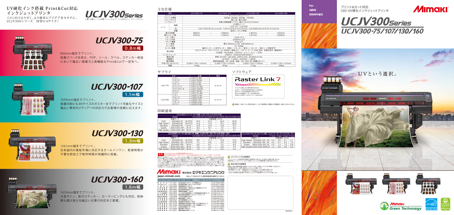 「UCJV300 Series」はUV硬化インクを搭載し、プリントとカットを1台で行えるインクジェットプリンタです。 「UCJV300 Series」はUV-LEDプリントとプリント&カット機能に加え、4層/5層といった多層プリント機能を搭載したハ...
