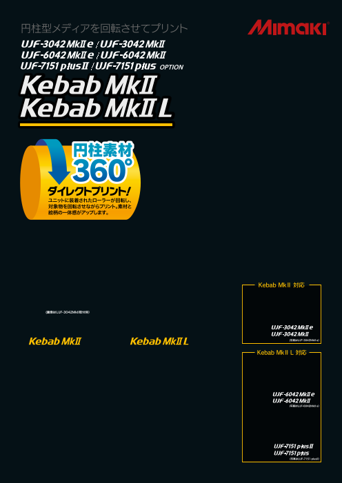ユニットに装着されたローラーが回転し、対象物を回転させながらUVプリント。素材と絵柄の一体感がアップします。 UVインクジェットプリンターにKebabユニットを追加することによって、UVプリント・3D加飾の可能性がさらに広がります! 概要: ・...