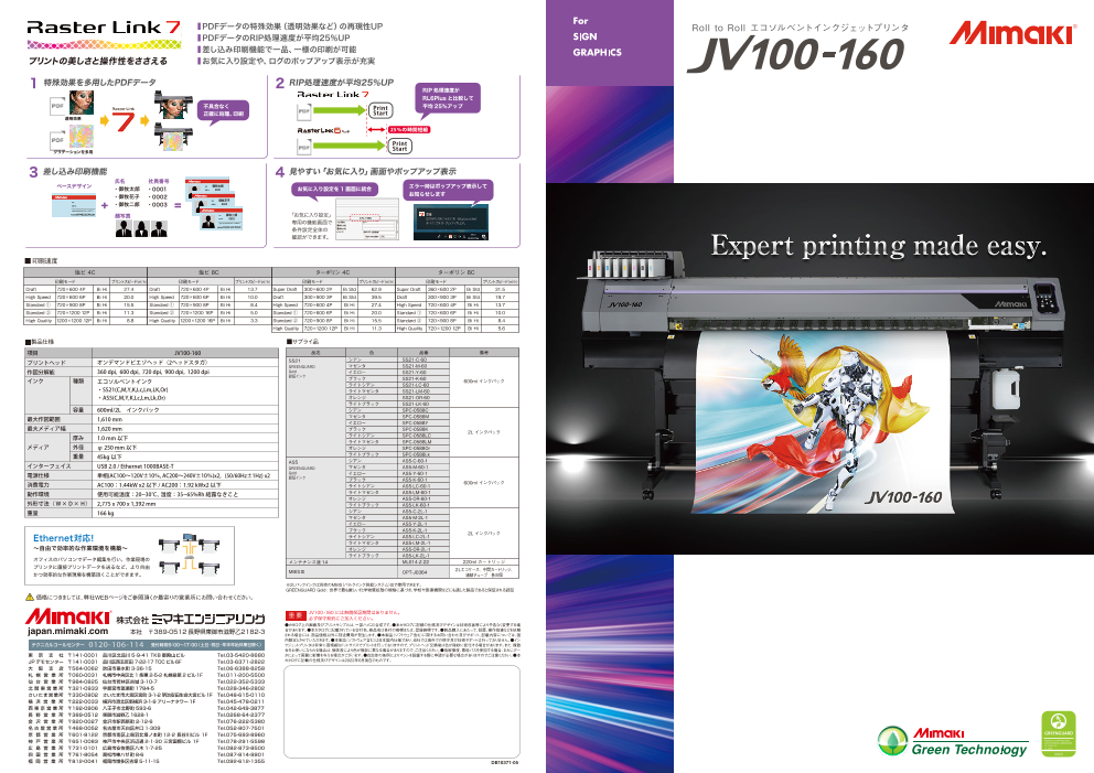 「330 Series」は、ミマキエンジニアリングが20年以上にわたり蓄積してきた技術力を結集し、美しい画質と高い生産性に加え、省作業をアシストする高い付加価値機能を備えたフラグシップモデルです。 「JV330 Series」は、エントリーモデル「...