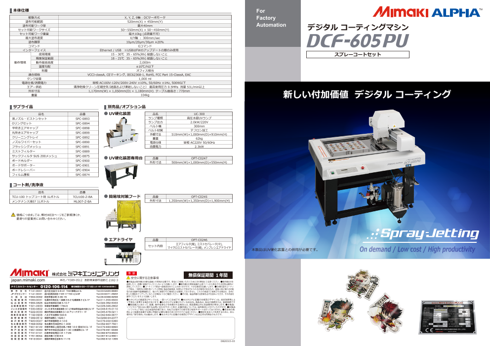 「DCF-605PU スプレーコートセット」は、スプレー方式の超薄膜塗布でトップコート剤の消費量を最大限に抑え、エア混入のない均一膜厚でコーティングを行うことができる全く新しいオンデマンド型の「デジタル コーティングマシン」です。 グループ会社であ...