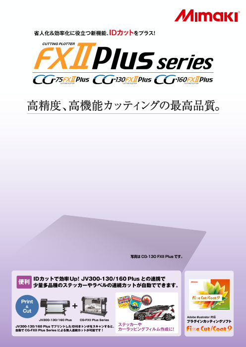 「CG-FXII Plus」は「CG-FXII」の後継機となる新型モデルです。 省人化&効率化に役立つ新機能、IDカット機能を”プラス”しました。 カッティングシートをカットした切り文字も! インクジェットプリンタでの出力したグラフィックを輪郭...