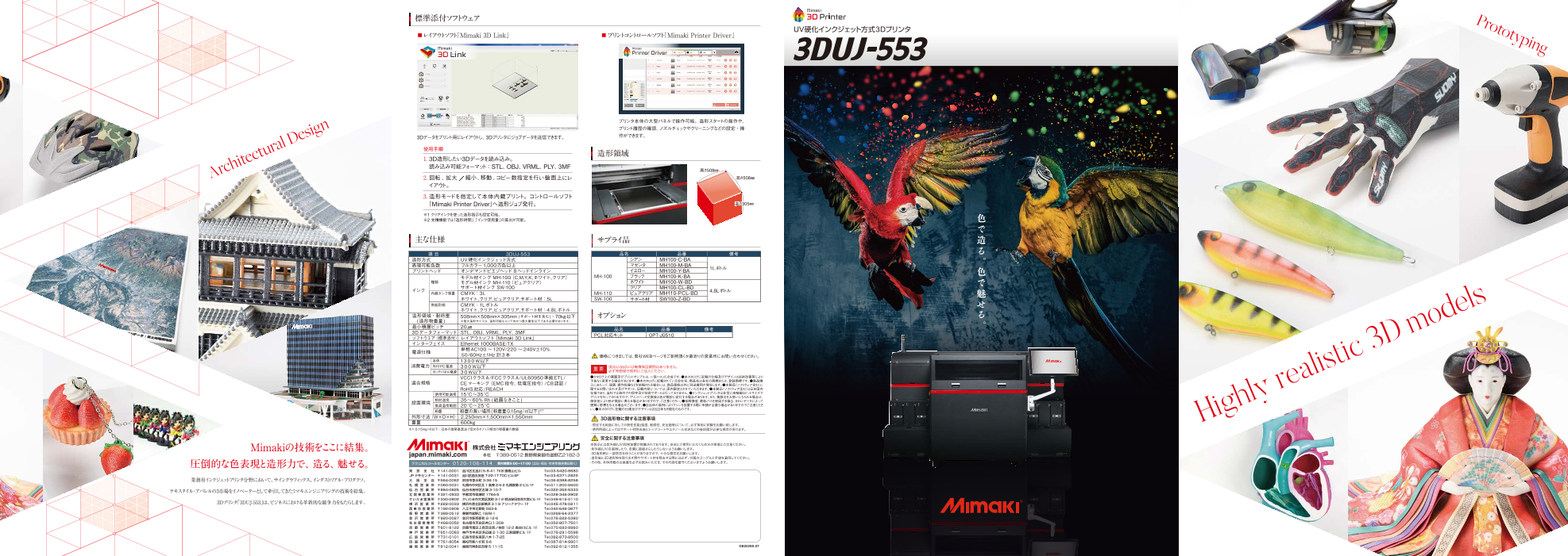 ◆1000万色以上のフルカラー造形! ◆フルカラー×クリアで、デザインをより自由に。 ◆水に溶けるサポート材、手間なく、美しい仕上がりへ ◆詳細はカタログをダウンロードしご覧いただくか、お気軽にお問い合わせ下さい。