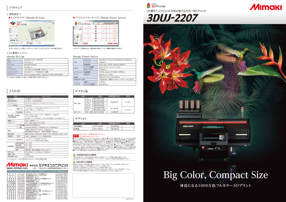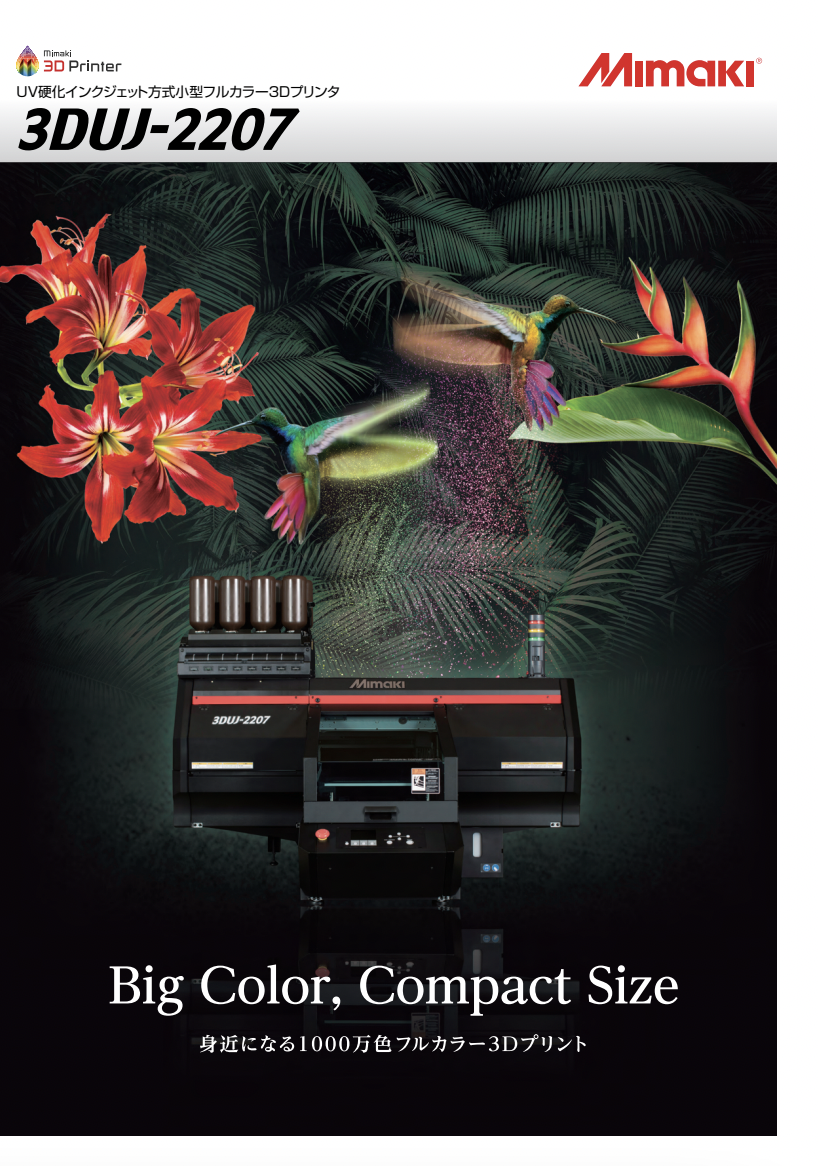 『3DUJ-2207』は、UV硬化インクジェット方式で1,000万色以上のフルカラー造形を実現する小型3Dプリンタであり、一般的な石膏方式に比べて約2倍の高精細な色表現を可能とします。 造形後の色付けでは難しかった豊かな色彩表現により、フィギュアや...