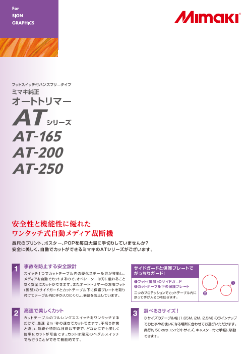 『AT Series』は、看板やポスター、POP、軟包装フィルムのカット、ラミネート後の縁取りなどトリミング作業を安全かつ効率的に行うことで働き方改革を実現する大判オートトリマーです。