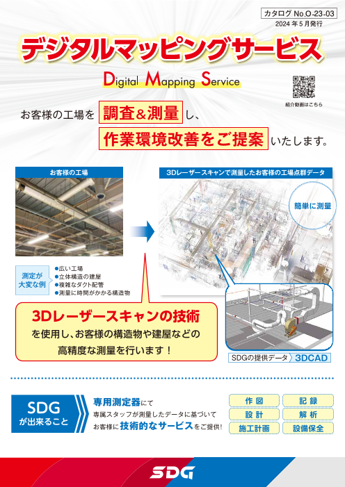 3Dレーザースキャンの技術 専用測定器にて 3Dレーザースキャンの技術 を使用し 、お客様の構造物や建屋などの高精度な測量を行います! SDGが出来ること 専属スタッフが測量したデータに基づいてお客様に技術的なサービスをご提供! ◆詳細は...