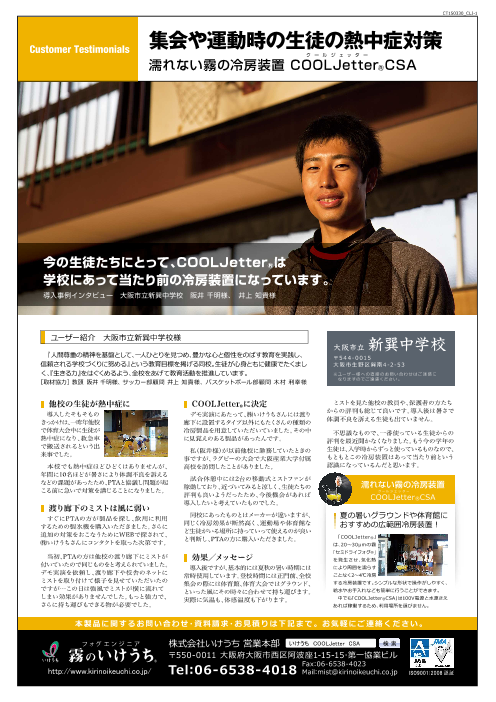 「COOLJetter(R)」は、20~30μmの霧「セミドライフォグ(R)」を発生させ、気化熱により周囲を濡らすことなく3~5℃低下させる冷房装置です。 シンプルな形状で操作がしやすく、給水やお手入れなども簡単に行うことができます。 中でも「COO...