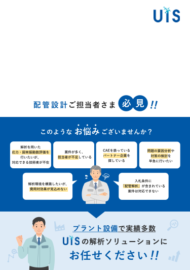 弊社は設立から約40年にわたり、UBEグループ・大阪ガスグループの一員として化学プラントや産業機械など、様々な設備の設計やトラブル対応を解析技術で支援してまいりました。流体解析の豊富な経験を活かし、貴社の生産性向上をご支援いたします。 例えば・・...