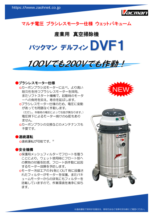 100vでも200vでも作動する、マルチ電圧対応バキューム。ブラシレスモーターを搭載し、従来のカーボンブラシ式バキュームと比べ耐久性が大幅に向上しました。連続運転も可能で、ヘビーな現場でも安心して御使用いただけます。
