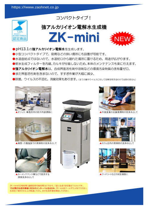 人体をはじめ設備機械や床等に優しい洗浄水として注目されている、アルカリイオン電解水を生成する小型最新機です。従来の洗浄剤に含まれる、界面活性剤や溶剤などの環境汚染物質を一切含まずPRTRにも該当せず、BOD、CODもゼロです。次世代の洗浄剤として御使用い...