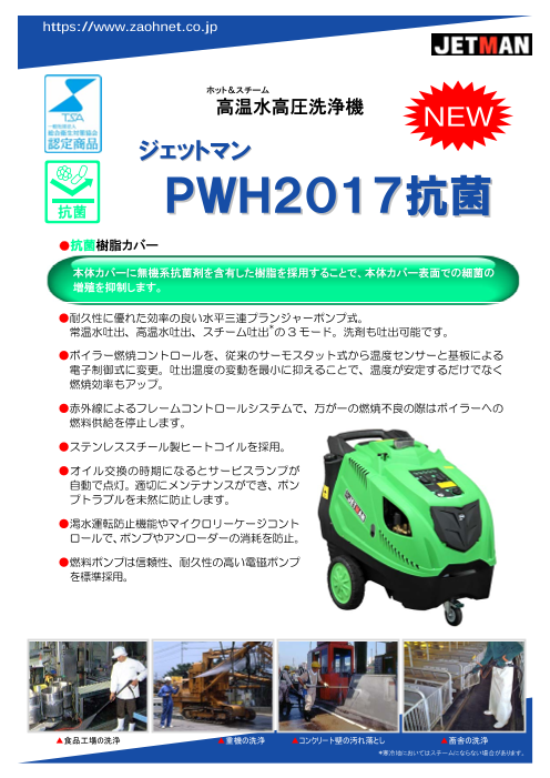 ◆耐久性に優れた効率の良い水平三連プランジャーポンプ式。常温水吐出、高温水吐出、スチーム吐出の3モード。洗剤も吐出可能です。 ◆ボイラー燃焼コントロールを、従来のサーモスタット式から温度センサーと基板による電子制御式に変更。吐出温度の変動を最小に抑える...
