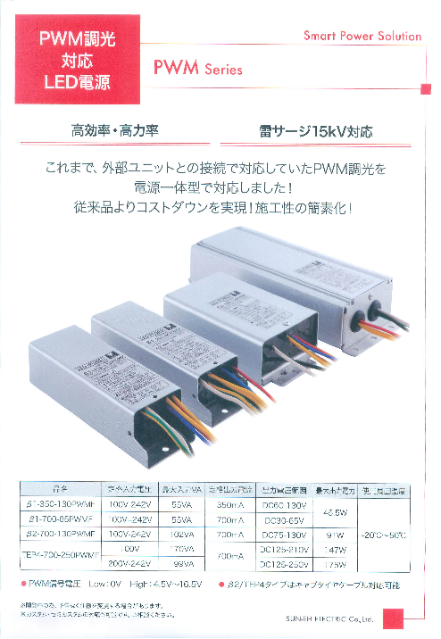 これまで、外部ユニットとの接続で対応していたPWM調光を電源一体型で対応しました! 従来品よりコストダウンを実現!施工性の簡素化! ◆詳細はカタログをダウンロードしてご覧下さい。