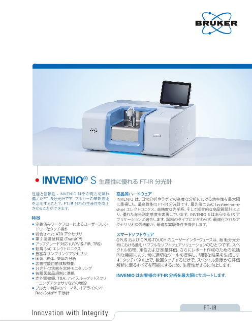ブルカーの革新技術を活用することで、FT-IR分析の生産性を向上させることができます。 ◆定義済みワークフローによるユーザーフレンドリーなタッチ操作 ◆統合されたATRアクセサリ ◆第2透過試料室(TransitTM) ◆アップ...