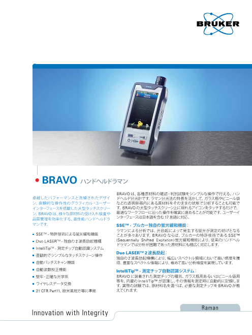BRAVOは、様々な原材料の受け入れ検査や品質管理を効率化する、高性能ハンドヘルドラマンです。 ◆SSETM-特許技術による蛍光緩和機能DuoLASERTM-独自の2波長励起機構IntelliTipTM-測定チップ自動認識システム ◆直観...