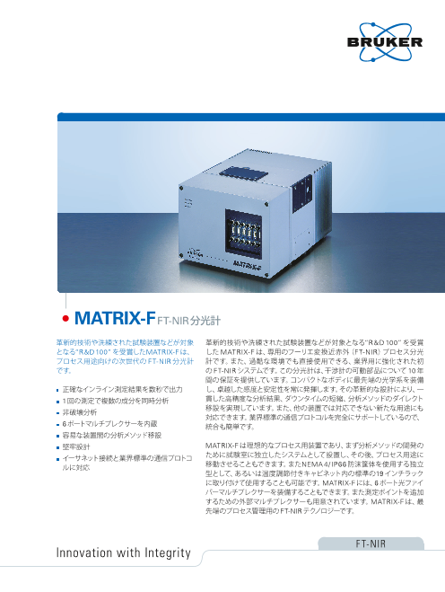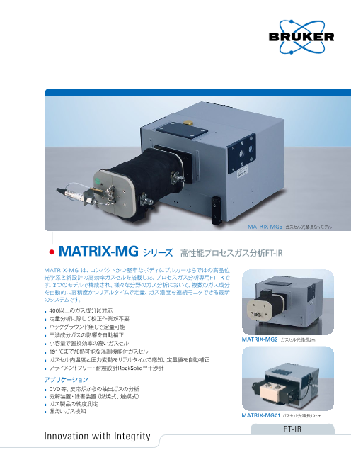 MATRIXシリーズは過酷な現場環境に耐えうる新世代のフーリエ変換近赤外分析計(FT-NIR)です。 コンパクトな筐体の中に高精度かつ堅牢性に優れた分光器を内蔵。 プロセスをコントロールする際に必要な工業用通信プロトコルをフルサポートしています。 ...