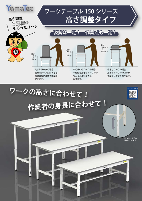 作業者のベストな高さに天板を合わせて作業の効率アップと作業姿勢をラクに保つことができます。